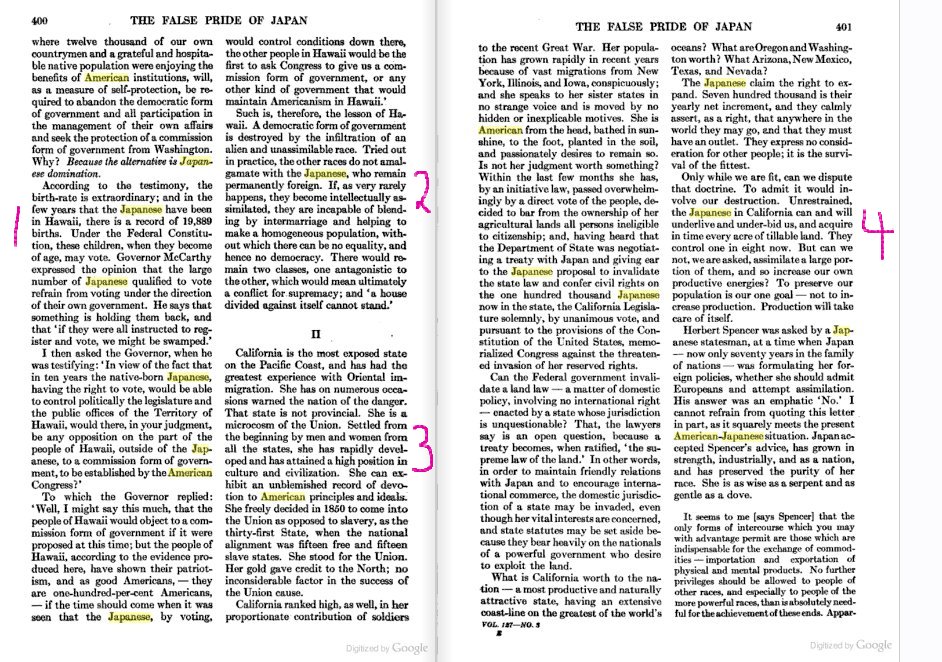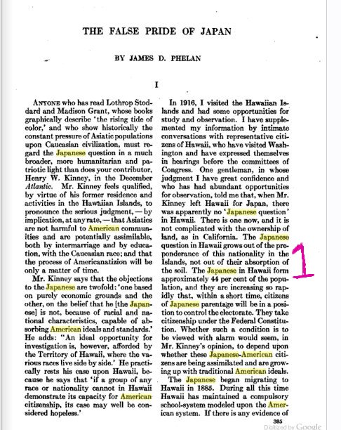 1. Reference is made to the percentage of Hawaii that is Japanese in origin, and how this group could take over the political system.