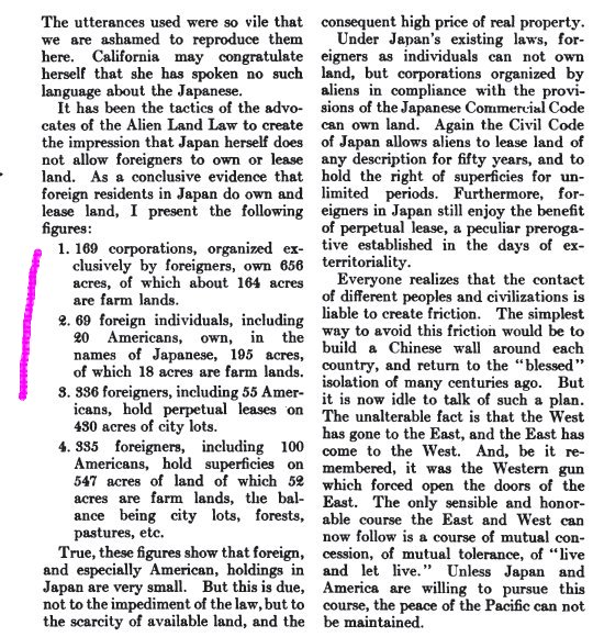 1: The Japanese don't own or control very much farm land.