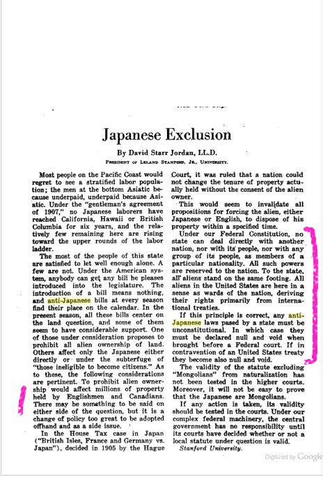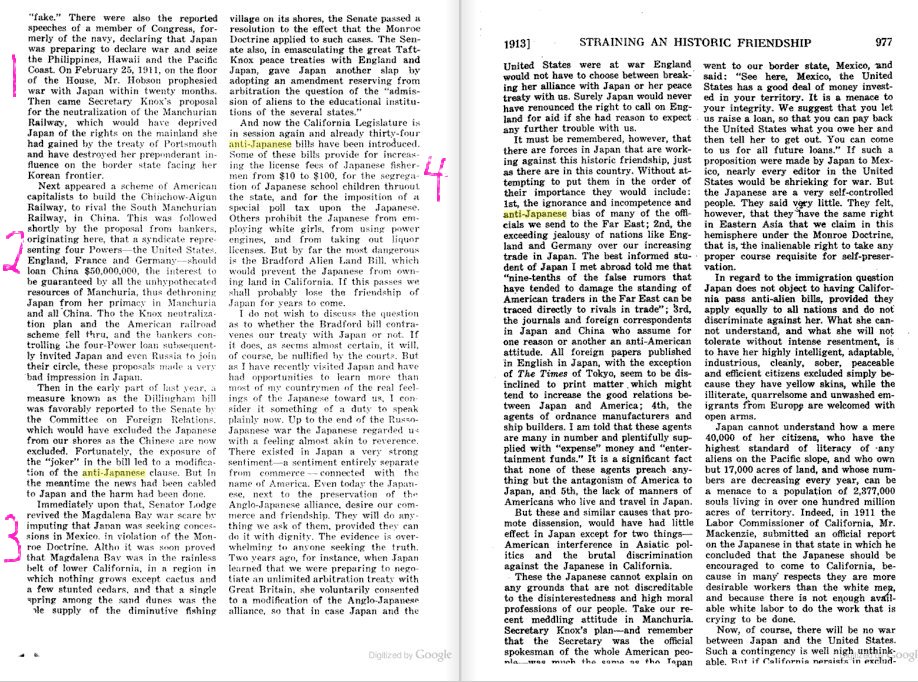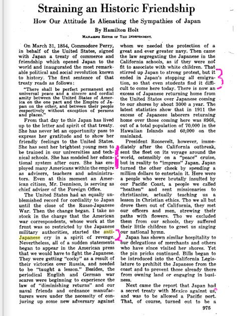2. He holds that some of the anti-Japanese feeling started with newspaper reporters covering the Russo-Japanese war.