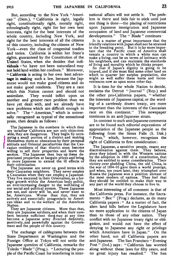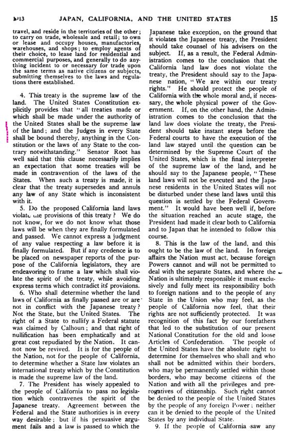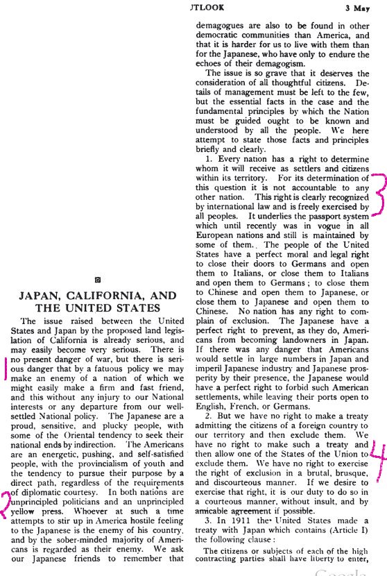 1: The Japanese 'school problem' in California could have been settled in a manner which would have not given any offense to Japan.