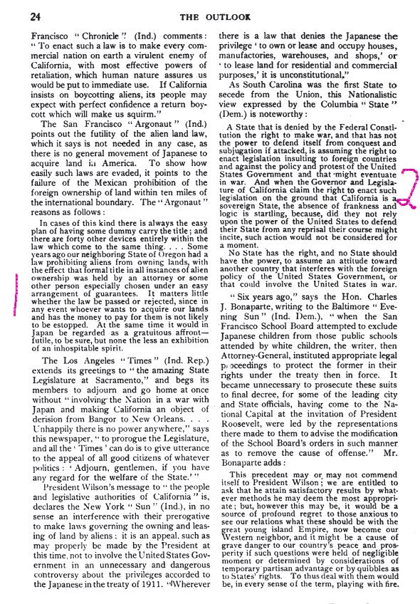 1: Apparently President Wilson had taken an interest in what was happening in California.