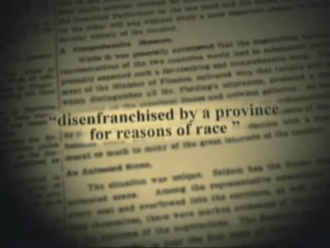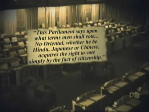 There's a clause, though, that, a province could block people of certain races from voting. British Columbia was one of the places that excluded voters due to reasons of race. That included Chinese, Japanese, and anyone from the 'Indian subcontinent.'