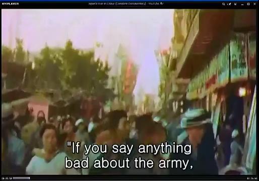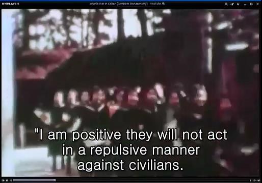 This is an incredible documentary, not just because it is in color, but because it shows the things that were going on in Japan at that time and the cultural maneuvering that the government used to get the people behind the war. It also shows the sadness that the war caused the people living in Japan, along with how vicious the Japanese soldiers could be in places like Nanking. Another really good thing about this documentary is how many first-person views are given from diaries and such.