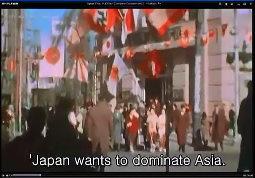 At 12 minutes into the film they start talking about the Japanese presence in China and about the taking of Manchuria, renaming it Manchuko. They also discuss the Rape of Nanking, Japan's alliance with Germany and Italy and also how Japan had to call up more and more men since the conquest of China was not going as they had planned.