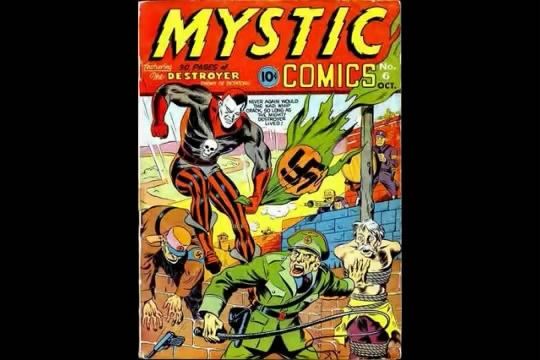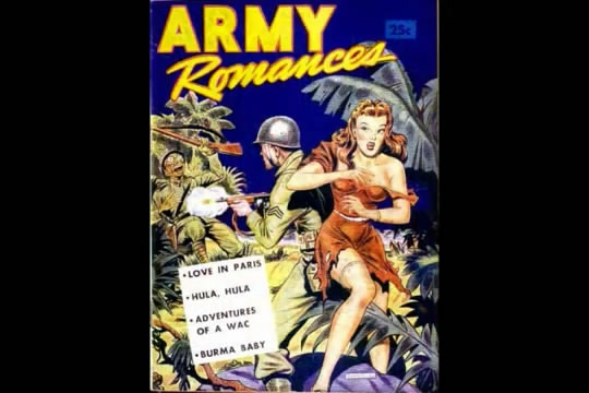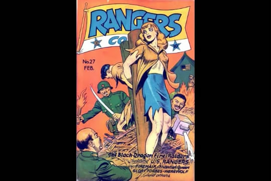 Covers using Nazis showed women being used for experiments or as hostages, while Japanese-oriented covers showed leering Japanese soldiers about to do things to the woman. Women, he says, were generally, though, pictured as being killed or going to be killed by the enemy rather than used sexually.