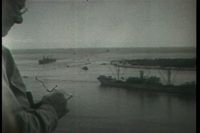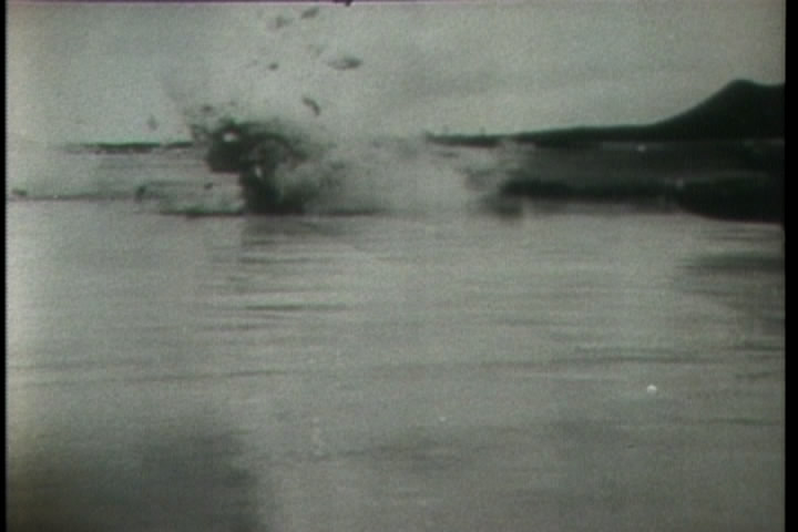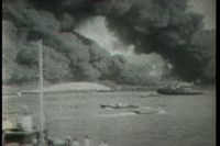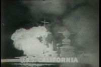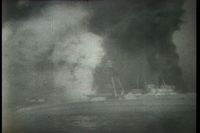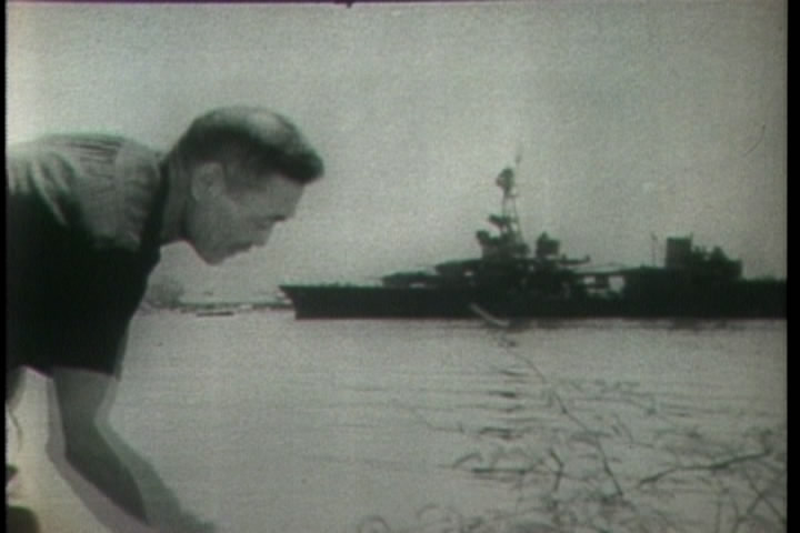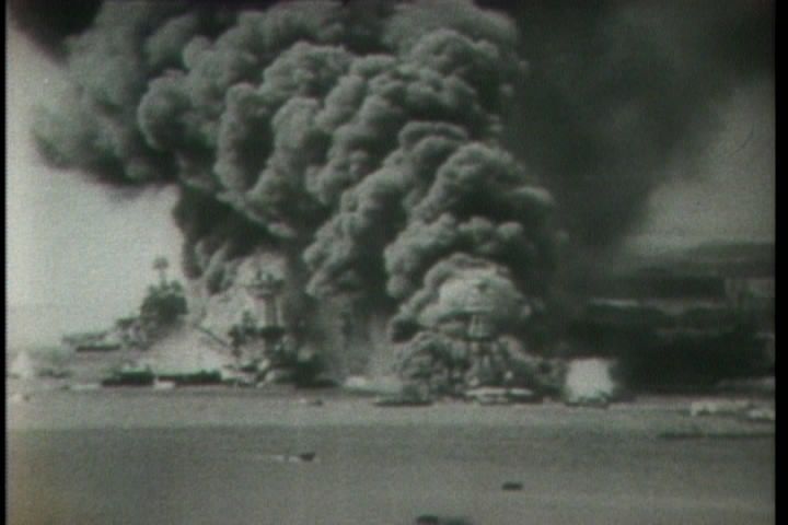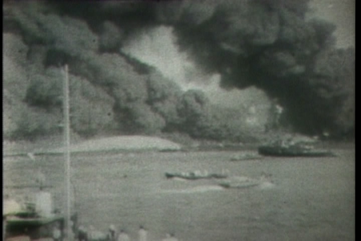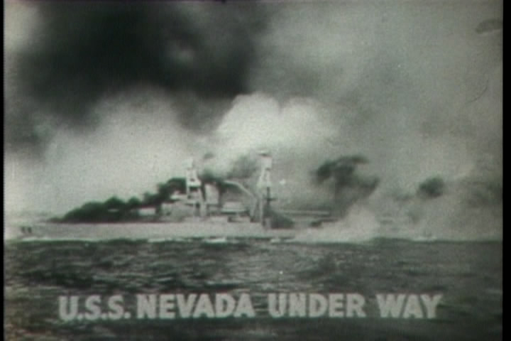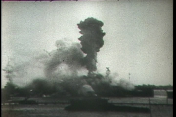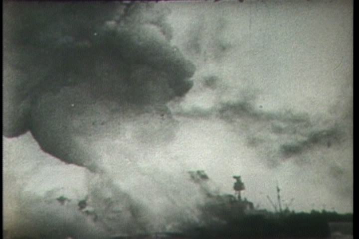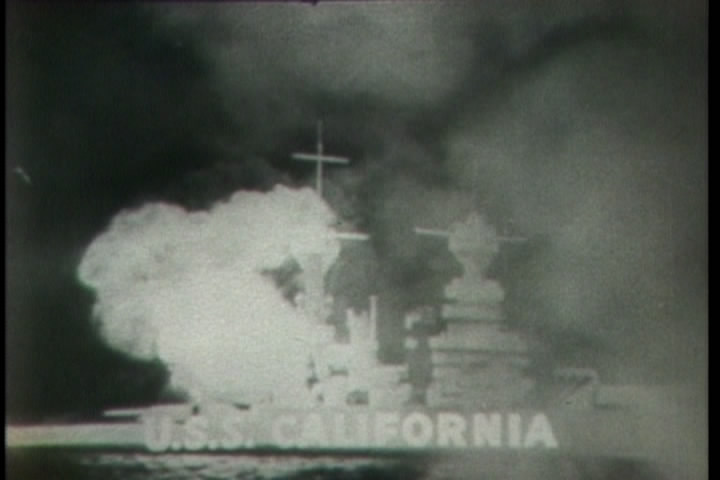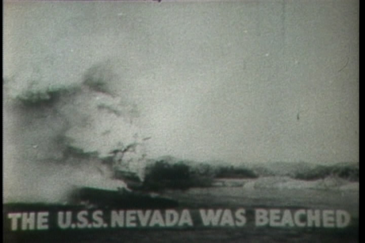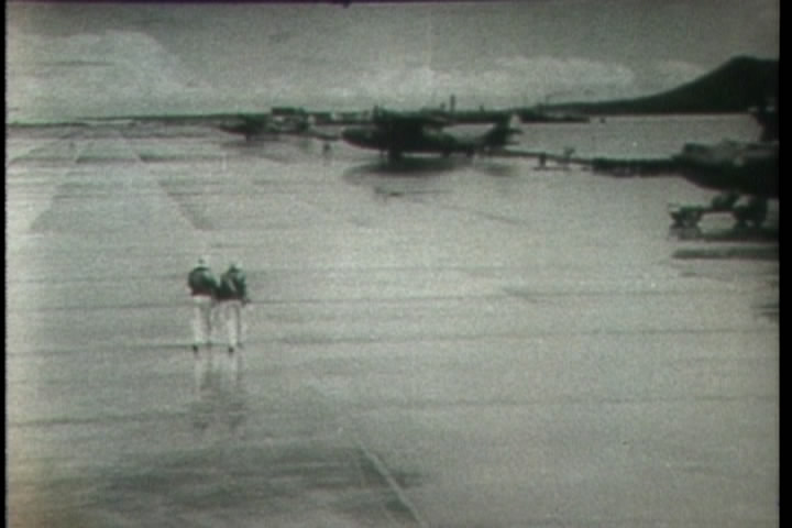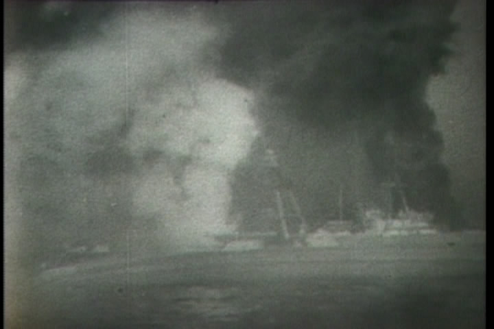 The film then talks about the ships at Pearl Harbor that lay at anchor. Notice the Japanese (probably Issei) in the foreground; this, plus the earlier mention of a the possibility of an “uprising” on the island is, I think, sort of a slap against the faces of the Japanese Americans living in Hawaii.