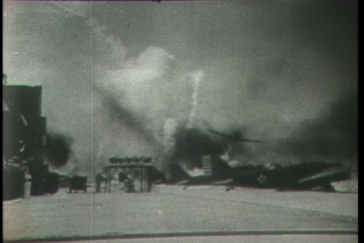 The film claims around 50 Japanese planes were shot down. (Actual Japanese losses were about half of that). The film also says that the attackers were “beaten off.”