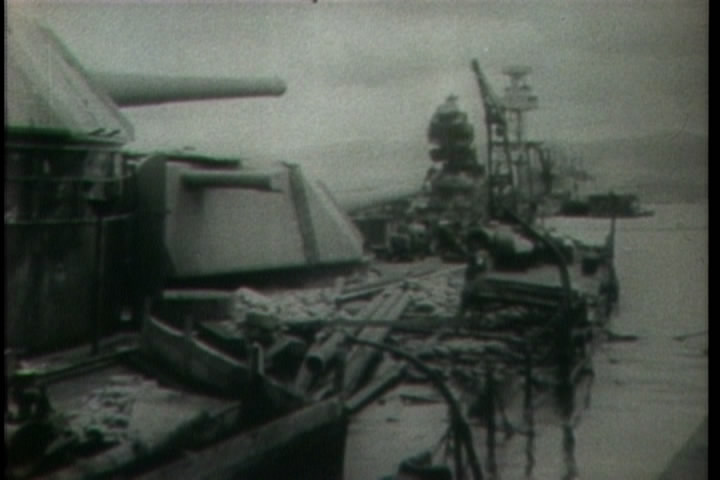 The ships are repaired. (This is one of the places the Japanese made a dangerous miscalculation. They apparently thought that just sinking ships was enough, but it was ships at a harbor. If the ships had been sunk at sea, they might not have been recoverable, but in a harbor, some of the ships could be refloated, put into drydock, fixed and updated. Granted, it took time, but the ships were made servicable. The Japanese did not bother to try and destroy the oil tanks or all the repair faciltiies; if they had done that, the ships would not have been ready for a much longer time.)