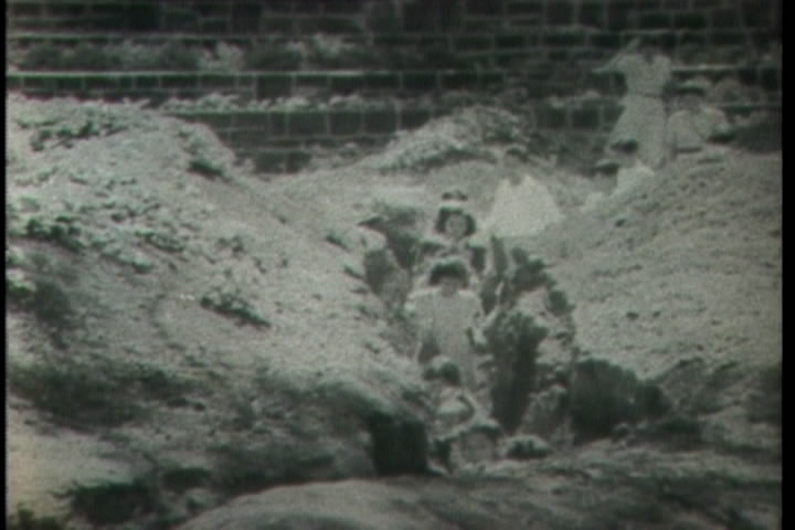 The film shows various things being done on the island for protection. This trench was supposed to be a shelter area for schoolchildren.