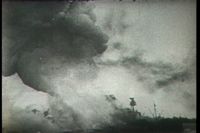 The couple looks on as some of the civilian areas catch fire, are bombed or strafed.