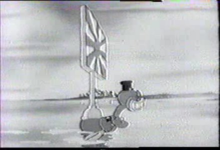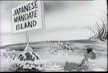 It then sticks a sign on something sticking out of the water, making it an island under Japanese control. Unfortunately for the duck it's not an island but a turtle that chases him and keeps hitting him with the sign.