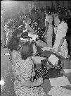 A train bringing approximately six hundred evacuees from the assembly center at Puyallup, Washington. Buses, used to transport these people to the Minidoka War Relocation Authority center, are waiting at the siding. |