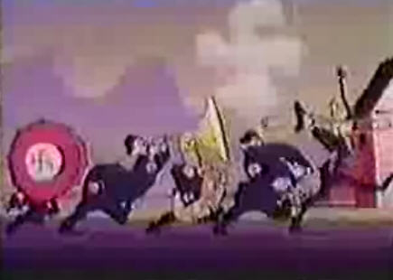 I will quote some of the lines from the cartoon, but not all of them. Further, the video was not in good shape at all, so the captures will tend to be blurry. I've done the best I could.