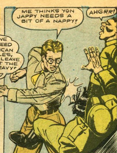 What I will do is include pages or panels that show the stereotyped Japanese of World War II so I won't be doing the entire comic.