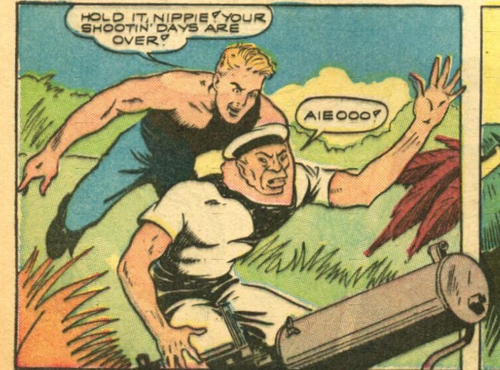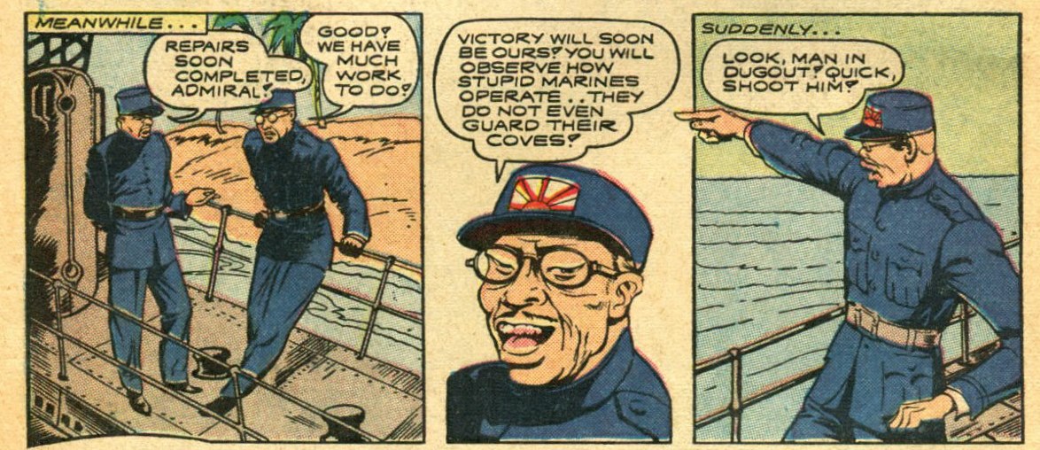 What I will do is include pages or panels that show the stereotyped Japanese of World War II so I won't be doing the entire comic.