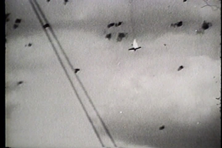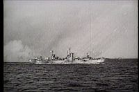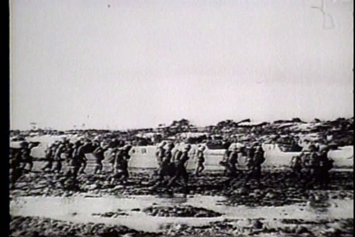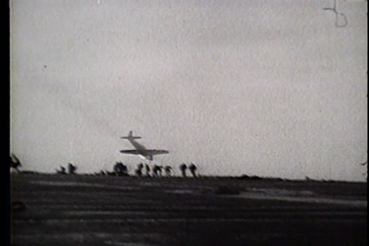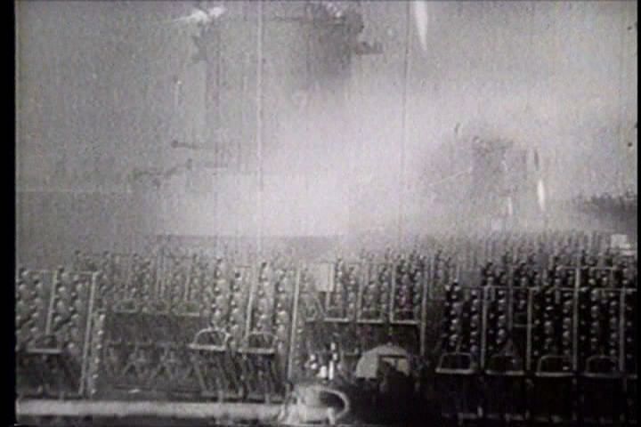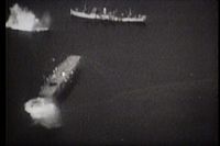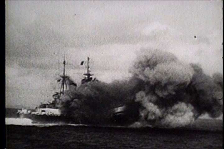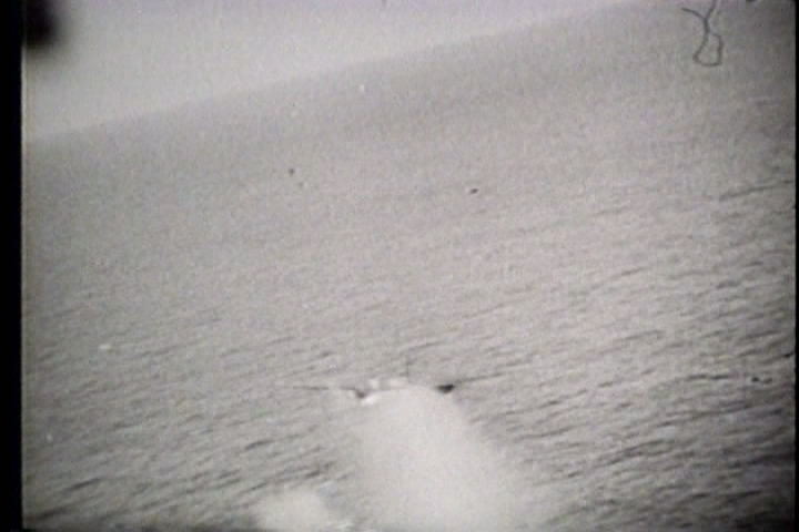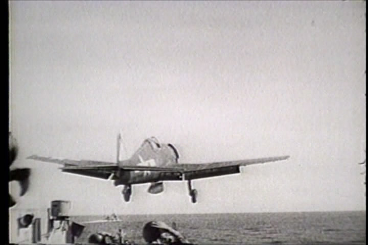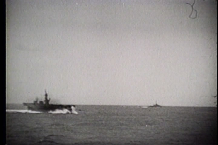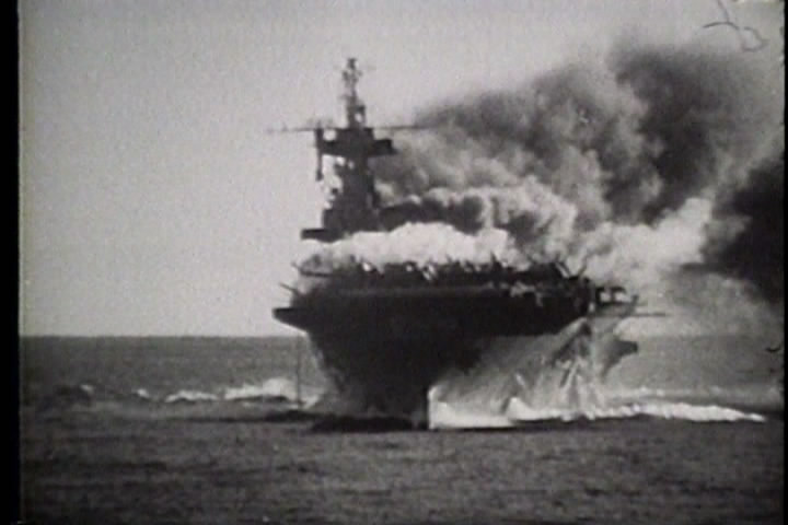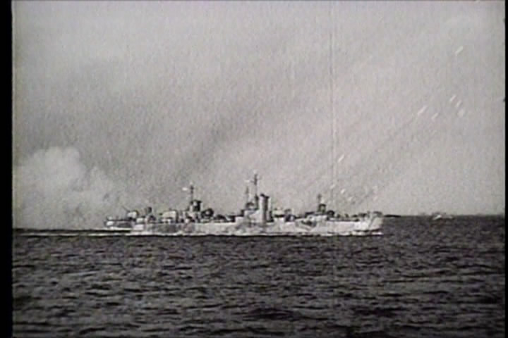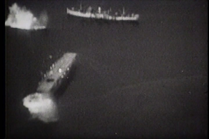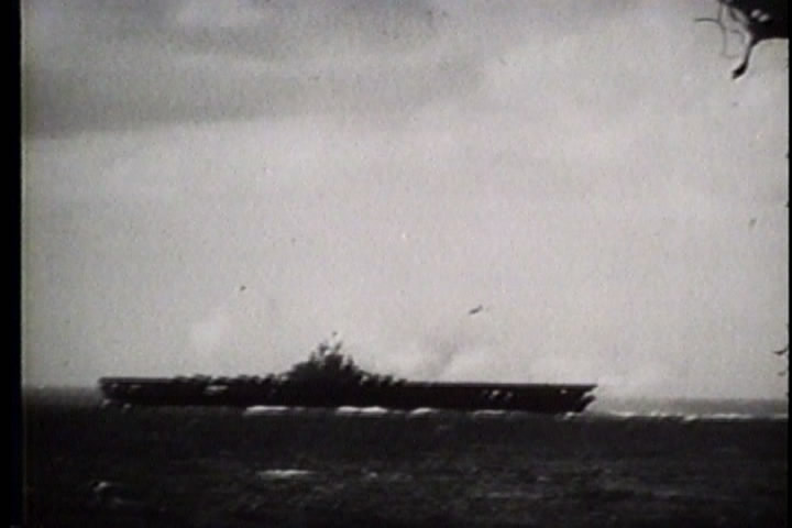 A narrator finally starts talking, noting that the ships were within range of Japanese airplanes.