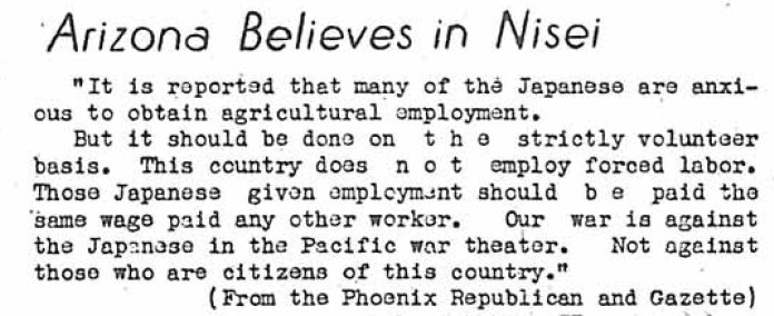 Page 1: The camp director explains the policy on uniting families; article on cotton picking; Issei will not be allowed to hold camp offices; a Red Cross has been established for the camp, and camp-grown radishes are being served.