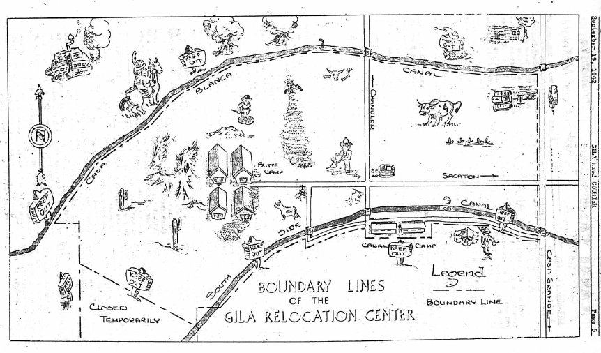 Page 4: An article about the project director; posters have been put up marking the boundary of the Gila center; the colony council article continues; only U.S. citizens 21 or older will be allowed to vote in the election; the newspaper makes its debut; firemen report early; jobs are available for mess workers.