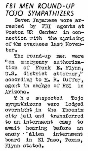 Page 3: Flower shops open; Gila Red Cross donates mochi, flowers to internees; speech censorship sees investigation; knitting class; church services; Buddhist council meets tomorrow; birth daze; 3 more depart for school, outside jobs; farm division.