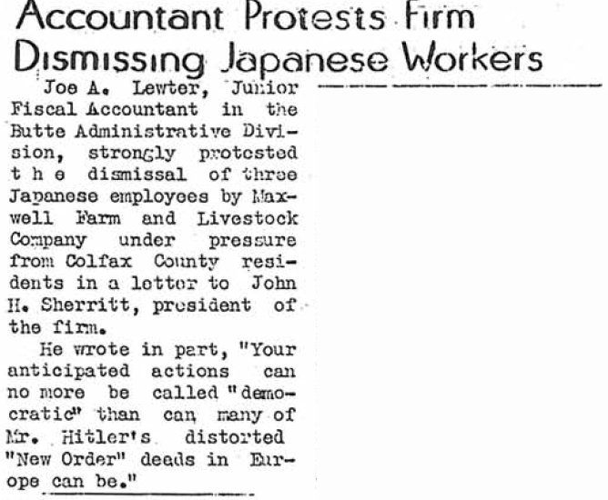 Page 3: Wanted, sixty irrigators; winter vegetable harvest continues in high gear; Butte CAS column; warehouse hours revealed here; emergency will drilled, from page 1; corporal departs for military duty; usage of sewing machine possible; Scout board chosen from page 1; claim check holders sought; vital statistics; valuables lost.