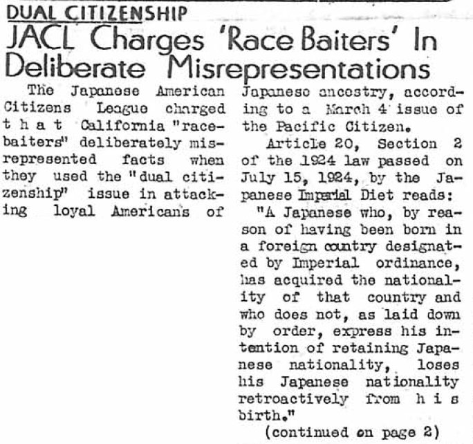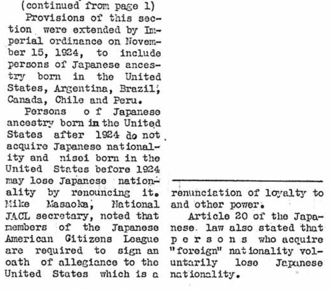 Page 3: Plans to use evacuees on Midwestern farms complete; water gun fire extinguishers; successful conference; local talents spotlighted in music hour; naturalize Orientals from page 1; calendar of events.