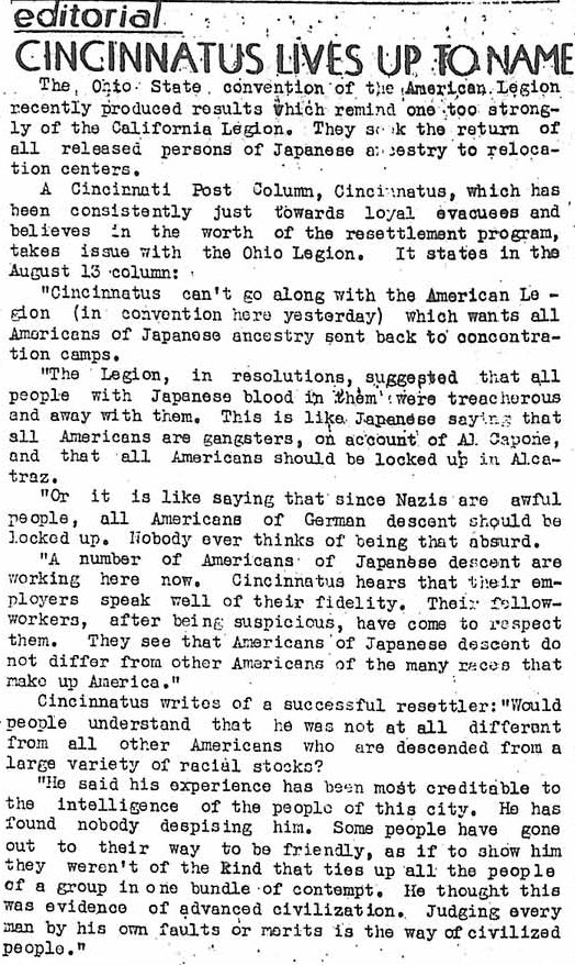 Page 3: Cleveland News praises Nisei; Great Lakes area open to Nisei seamen; fishermen; four warehouse divisions moving; tickets for movie on sale; Forensic club meets Thursday; strict adherence to visiting hours urged; property service cont; Tule Lake cont.