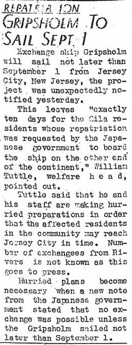 Page 1: Employment cut to 4,575 by September 1; Rivers faces meat shortage; WAC officer in canal today; inoculation for dogs to start; Nisei wounded in action is recovering normally.