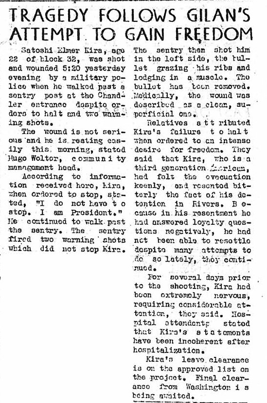Page 3: Utah governor warns of restrictions on Nisei rights; principals plan to visit Gila; relocation sex-man board plan; Keadle off to Poston; drawing for raffle Sunday; munch at movie; hospital staff loses member; course postponed.