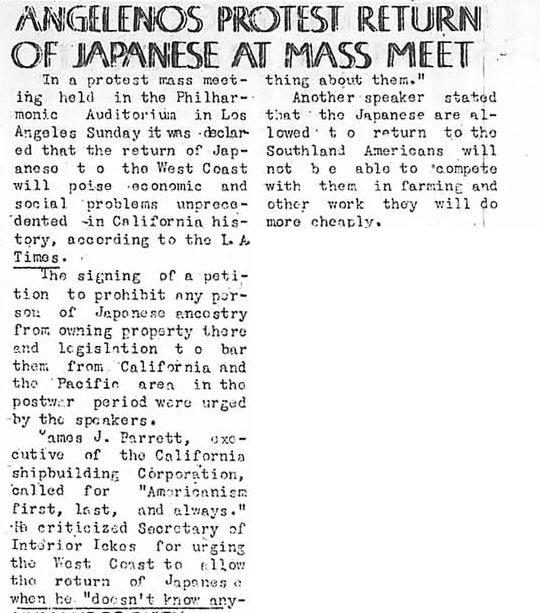 Page 5: Check and Pick; job offers for older evacuees; anti-alien land law petitioned; piano recital; Ohio relocators live gracefully; photo notes; vital statistics.