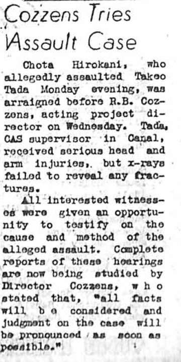 Page 7: Vegetable packing material shortages deter exportations; Rivers' daikon Arkansas bound; canal sponsors grand exhibit; latest sweater fashions here; Cozzens attends directors meet; quarters for medical staff (from page 1); three plans for consideration (from page 1); Father Clements; canal library.