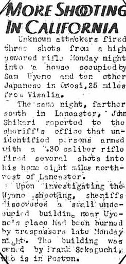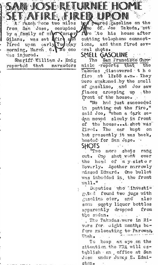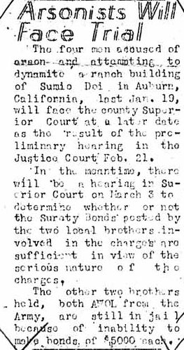 Page 1: Hog farm fire destroys shed, some property; more on filing of income tax; claimants on produce house should file; Sumitomo bank seeks addresses; visitors bring news of Gilans; Myer visits next week.