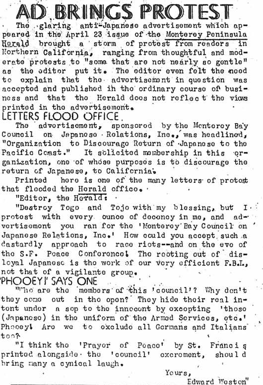 Page 2: Sinatra urges race tolerance; editorial; eight Red Cross messages here; Union accepts Nisei Americans; less meat for Gila residents.