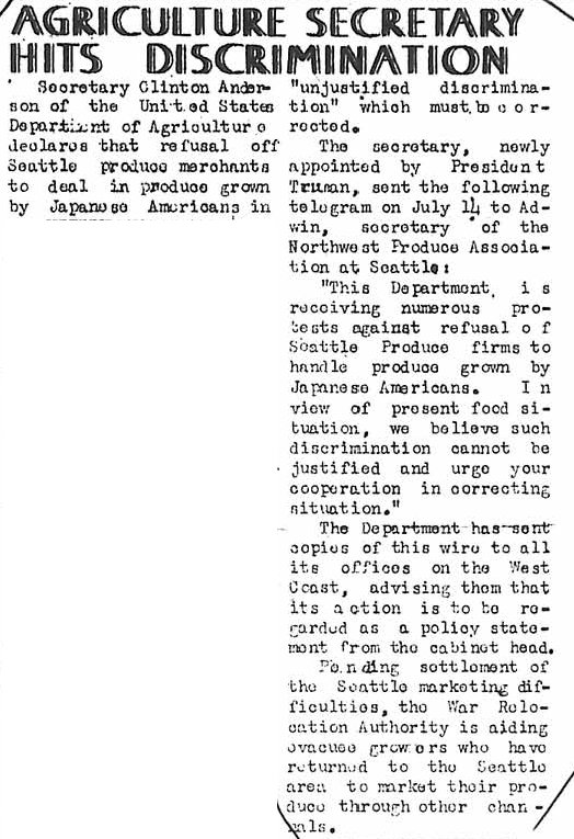 Page 7: Seattle group discusses race; relocation parade; return bottles, co-op requests; ads and ends.