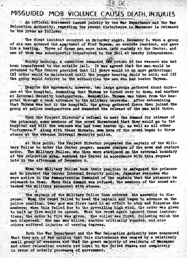 Page 3: Farm grows own seeds for '43 vegetable crop; Norris stresses gas conservation; latest arrivals boost populace; St. Nick to visit ward D patients; various groups tour farms; shoe shop has enuf leather; wanted: gobo seeds; not prisoners, says D'Amat; Gilan becomes notary public; vital statistics.