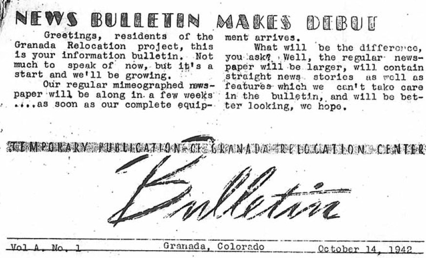 Page 2: They are running a contest to name the newspaper. Granada farmers who are working property bordering the camp will be moved out. Schools will start. Some people will be coming in to advise the camp on self-government.