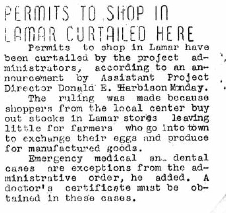 Page 5: A barber shop has opened. Two people have died, one only 25. The sister of the paper's staff artist has died. A couple from Santa Anita has married. The Lamar Chamber of Commerce banquet will be that night. Empty milk bottles need to be returned. (This type of thing seemed to be a problem at numerous camps; unreturned milk bottles and unreturned coke bottles.)