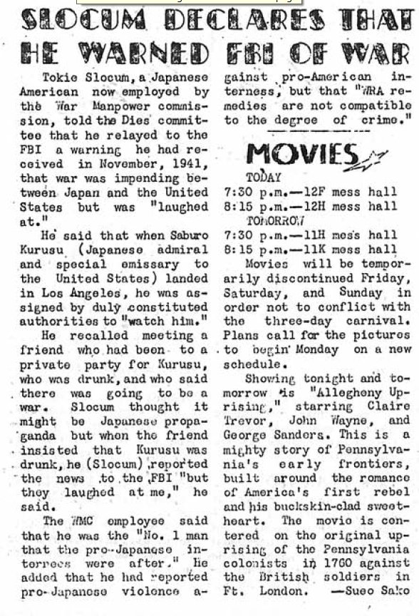 A Nisei warned the FBI about war coming. I've also included the movie section so you can see what kinds of movies were being run.