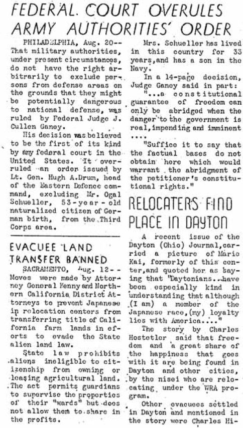 Page 2: Letter to the Editor; Relocation; WACs cont.; school to excuse students out on seasonal work; Gripsholm to sail Sept. 1; polio cont.