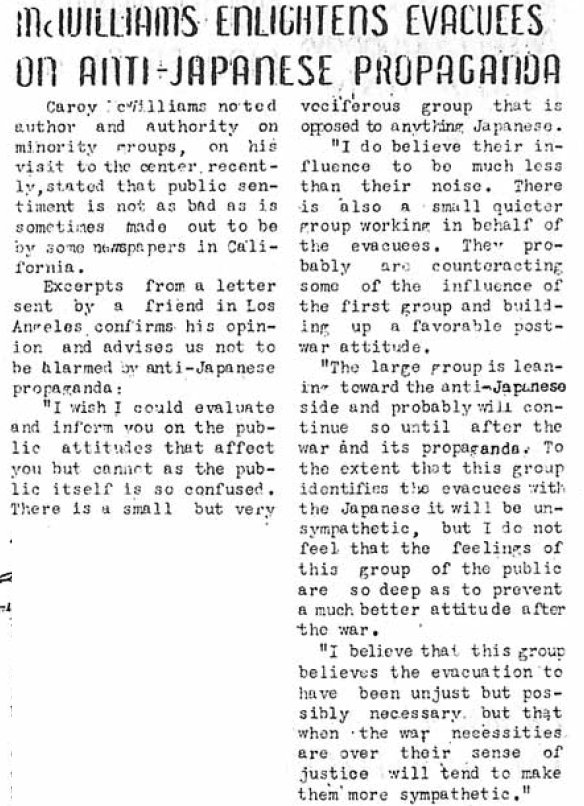 Page 3: Vandals loot temples, damage evacuee property; Just Incidentally; relocation; changes in adult classes released; vital statistics; describes conditions in Detroit.