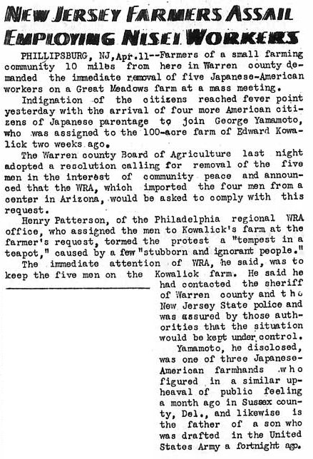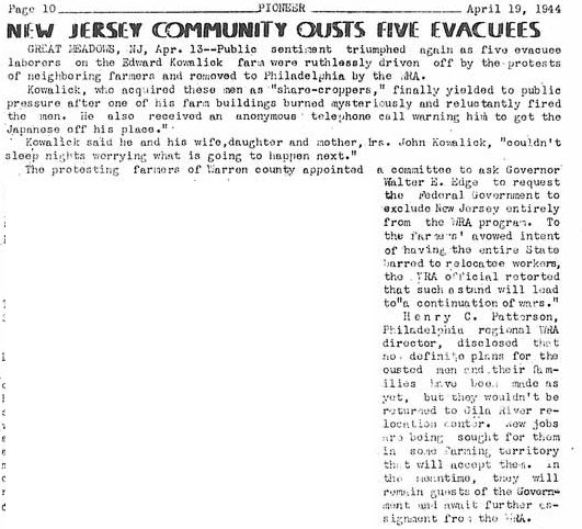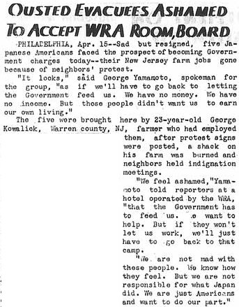 Page 8: Co-op donates $53 to ARA; five evacuees driven from NJ farm secure new jobs; selected as main assembly speaker; editorial cont; Dies' member attacks WRA policy in letter.