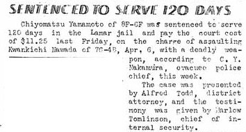 Page 1: New order provides Pullman accomadations for invalids; co-op canteen to close on Sundays; membership drive for Red Cross set; Turk to return from Capitol Hill; procedure to qualify as registered voter released; twenty more Amacheans inducted into U.S. Army; local WRA staff hits $496 in Red Cross Drive; Harbison resigns position.