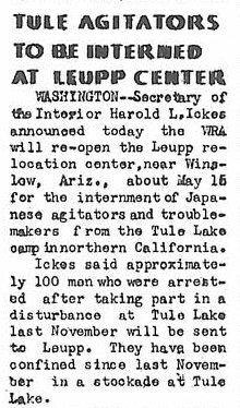 Page 8: Good enough for sea duty but not enough for La Guardia; 80 segregees arrive at Tule from Minidoka; this world today cont; senior skip day at Arkansas R.