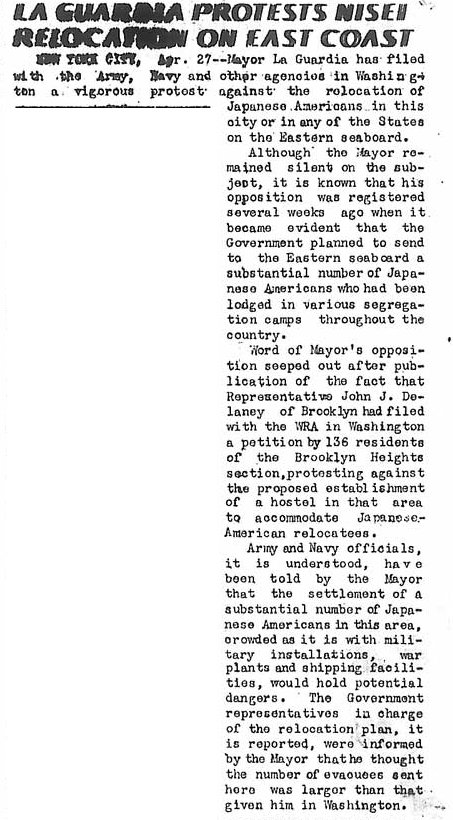 Page 4: My Two Cents; La Guardia wants to kick out this Nisei family; wedding; Times features Amache draftees; Nisei problem cont; relocation; class to be held at high school.
