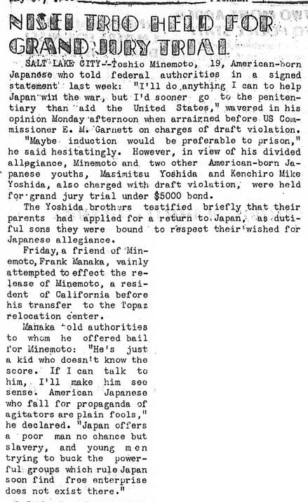 Page 4: No more evacuees to relocate in Colorado; two more added to police staff; Symes names 14 lawyers for Nisei draft objectors; Hatanaka elected prexy at training period camp; wedding; Bodine to arrive here tomorrow; church services; Shuck leaves education staff.