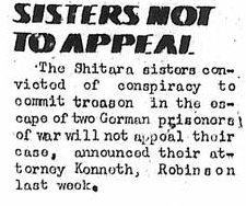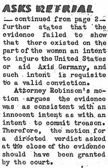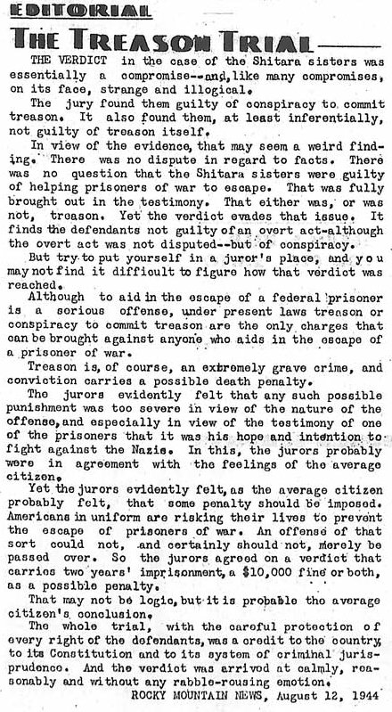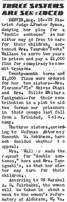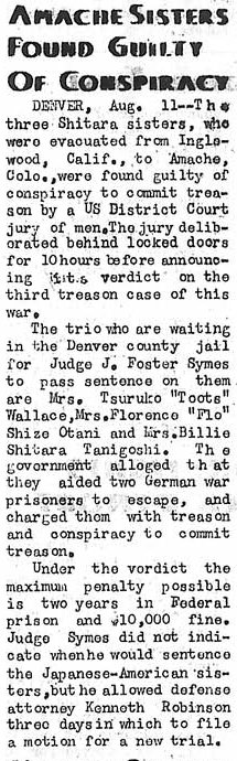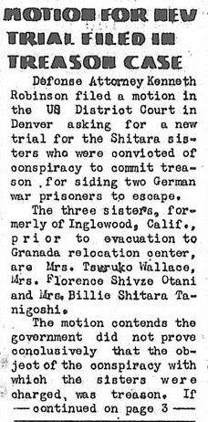 Page 1: Completes 33 combat missions; 9 called for active duty; two Amache families have four G.I. Joes; dismissal not binding in other courts.