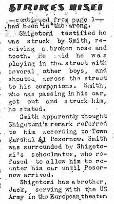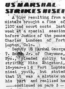 U.S. Marshall hits Nisei youth. The marshall thought he was called a name and felt it was his right to hit the kid because of that. Stupid.