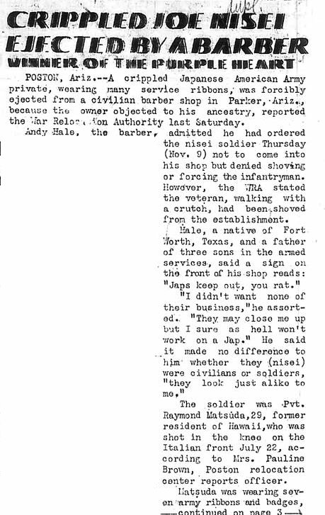 Page 1: List local selectees for induction; report seven more Army casualties; services for Nisei heroes; report on farm yield; return from business trip.