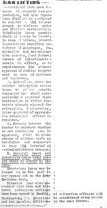 Page 3: WRA clarifies evacuee travel regulations; on JACL advice; admission to movies, games to be reduced; wins 2nd place.