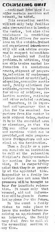 Page 6: Y's way; Ickes says evacuees law-abiding; relocation; vital statistics.