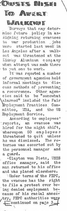 Page 3: Servicemen art contest; services available for evacuee farmers; Nisei return no threat to farm interests; Hi-Y aids dimes march; postal notes now available.
